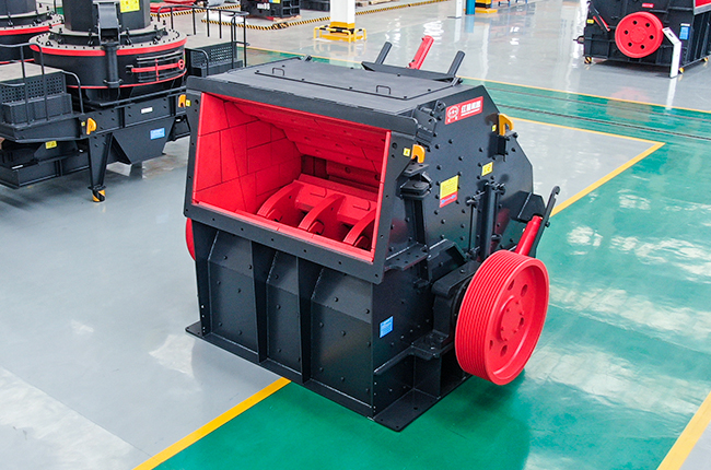 反击式破碎机是一种利用冲击能来破碎物料的破碎机械。本机工作时,在电动机的带动下转子高速旋转,物料进入板锤作用区时,与转子上的板锤撞击破碎,后又被抛向反击装置上再次破碎,然后又从反击衬板上弹回到板锤作用区重新破碎,此过程重复进行,物料由大到小进入一、二、三反击腔重复进行破碎,直到物料被破碎至所需粒度,由出料口排出调整反击架与转子之间的间隙可达到改变物料出料粒度和物料形状的目的。