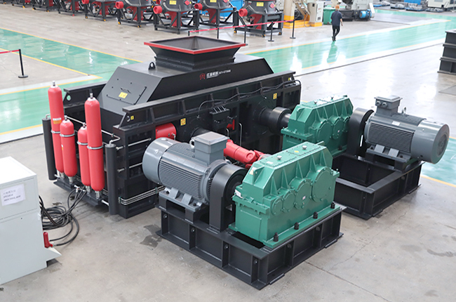 将破碎物料经给料口落入两辊子之间,进行挤压破碎,成品物料自然落下。遇有过硬或不可破碎物时,其辊子可凭液压缸或弹簧的作用自动退让,使辊子间隙增大,过硬或不可破碎物落下,从而保护机器不受损坏。相向转动的两辊子有一定的间隙,改变间隙,即可控制产品排料粒度。