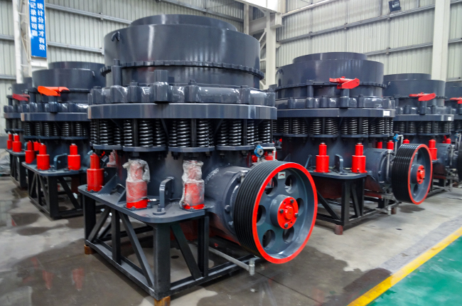 中、大规格破碎机中,采用了液压清腔系统,减少了停机时间,且每种规格的破碎腔型多,用户可根据不同的需要,选择不同的腔型,以更好地适应用户需要。本机密封采用润滑脂密封,避免了给水及排水系统易堵塞的弊病及水油易混合的缺陷,弹簧保险系统是过载保护装置,可使异物、铁块通过破碎腔而不危害破碎机。本机分为标准型和短头型,一般而言,标准型给料粒度大,排料粒度也较粗,短头型的破碎锥较陡,给料粒度小,有利于生产细粒级的物料,故标准型一般用于粗、中碎,短头型用于中、细碎。